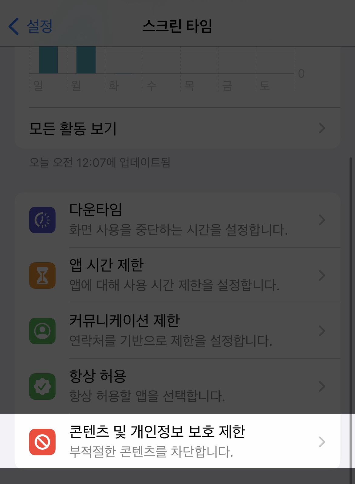 1. 콘텐츠 제한 확인